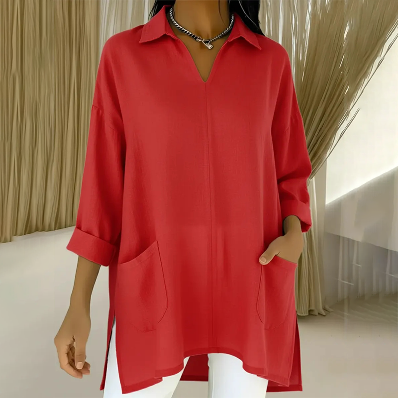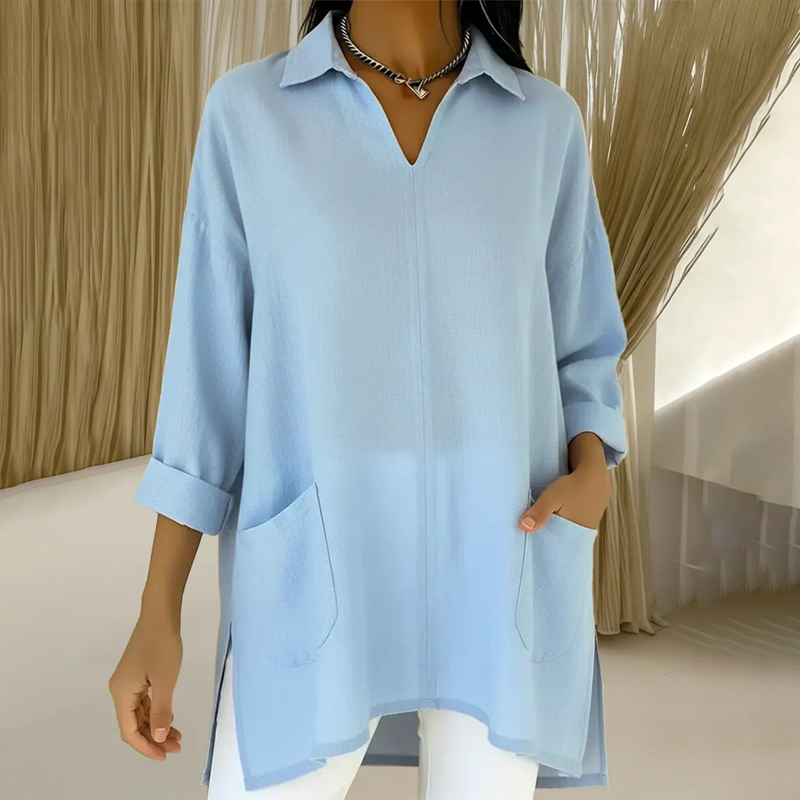 ✨🔥Women's Lapel V-Neck Tunic Top with Pockets👚